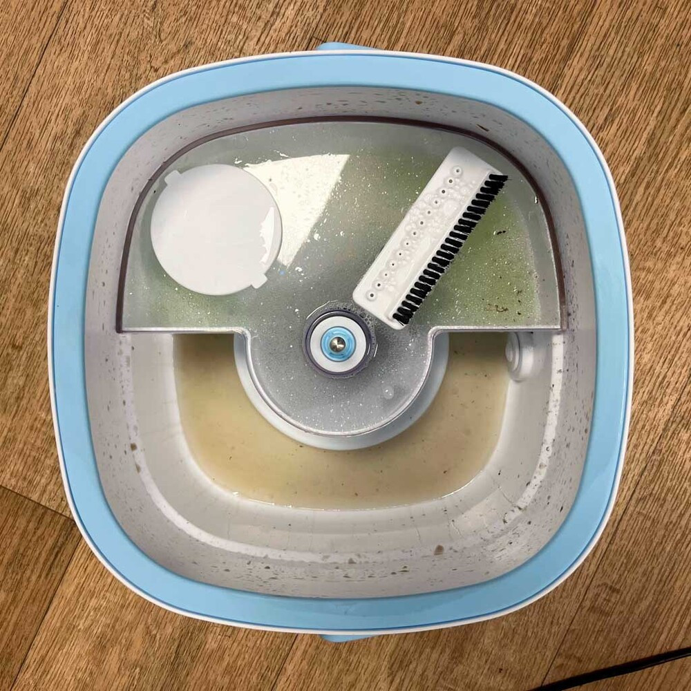 azonnali és hatékony vízelvezetést. A kétkamrás rendszerű vödör hatékonyan megakadályozza a szennyezett víz újrakeveredését, a vödörben lévő dugó pedig megkönnyíti a tartály gyors ürítését. Ezáltal a padlótisztítás még higiénikusabb és kényelmesebb.