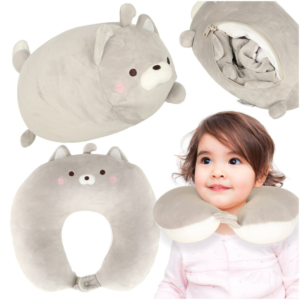 2 az 1-ben utazópárna, nyakpárna, repülőre, autóba, macska kabalafigura