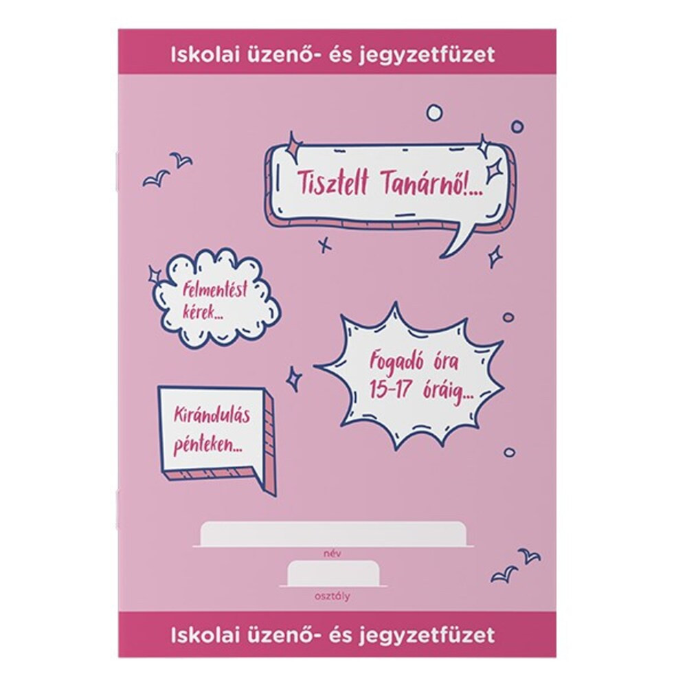 Minőségi A5 méretű, fűzött, üzenő - és jegyzetfüzet 32 lappal. Az üzenőfüzet célja a Tanárok és a Szülők közötti kommunikáció segítése, a fontos információk rögzítése, átadása. A füzet tematikusan van felépítve és az előre rögzített panelek segítenek a gyors kitöltésben.