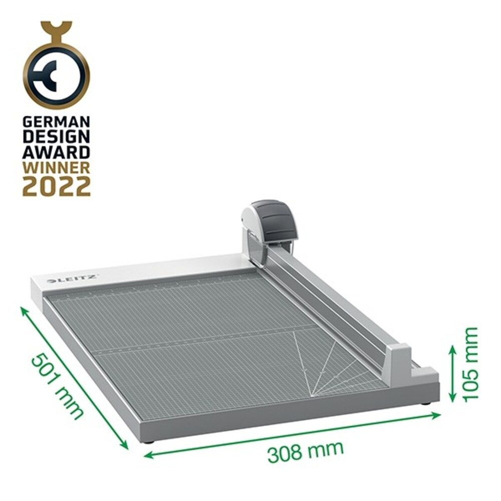 A Leitz Precision Office A4+ görgős papírvágó tökéletes a mindennapos papírvágási feladatokhoz vagy kreatív munkákhoz. Ez az erős, de sokoldalú görgős papírvágó egyenes forgókésével könnyedén, gyorsan és precízen vág akár 15 A4-es papírlapot (80 g/m2), és használaton kívül könnyen tárolható. Válassz az egyenes, hullámos vagy perforáló vágású pengék közül, amelyek az átlátszó műanyag toknak köszönhetően 100%-os biztonságot és könnyű cserélhetőséget biztosítanak. A vágófej kényelmes használatot kínál, míg a vágóél-vezető az áttetsző kialakításnak köszönhetően lehetővé teszi a vágási vonal nyomon követését a mindig pontos vágás érdekében. Az automatikus papírrögzítő és egyértelmű méretjelölések pontos lapigazítást biztosítanak. Ez a biztonságosan zárt, csiszolt acél körkéssel, masszív munkafelülettel és 5 év garanciával rendelkező papírvágó gép pontos vágást biztosít hosszú éveken át.