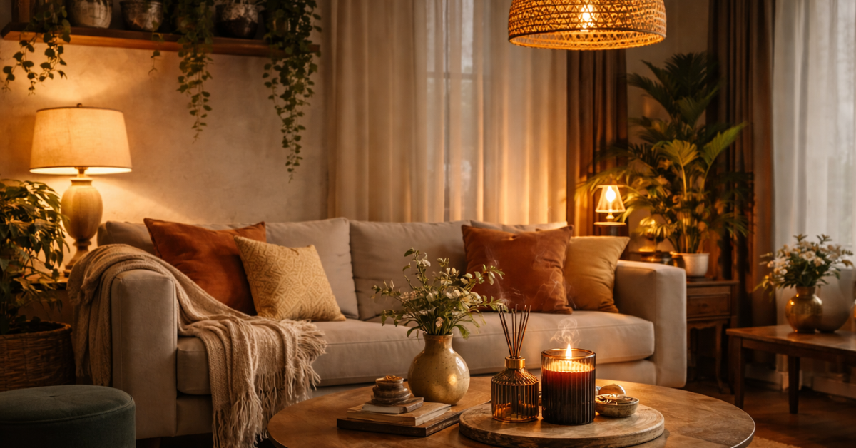 A gyertyák, diffúzorok és illatos dekorok egyre fontosabbak. Nem csak kiegészítők, hanem a tér hangulatának részei.