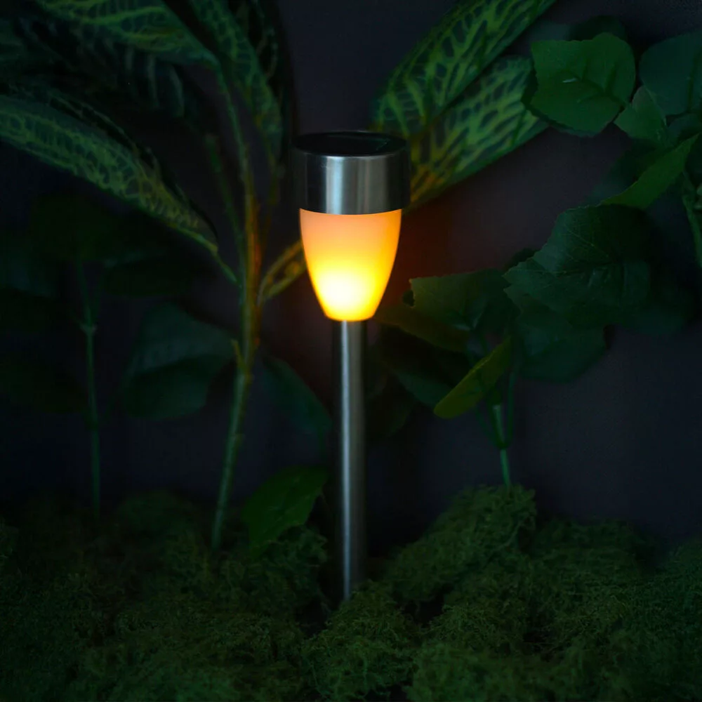 A Modee Lighting Szolár Leszúrható Lámpa GS035 elegáns és energiatakarékos megoldást kínál a kültéri világításra. A rozsdamentes acél hatású kivitelnek és a letisztult formának köszönhetően harmonikusan illeszkedik bármilyen kertbe, udvarba vagy teraszra. A lámpa napelemes működése révén napközben feltöltődik, majd sötétedéskor automatikusan bekapcsol, így kellemes, gyertyaláng-hatású fényt biztosít anélkül, hogy hálózati áramra lenne szükség.
