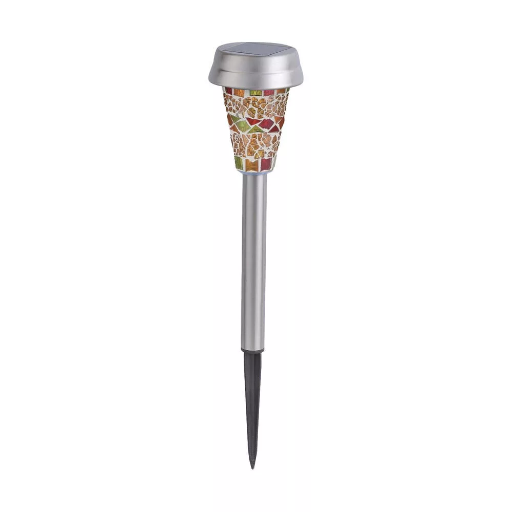 A Modee Lighting Szolár Leszúrható Lámpa GS030 egyedi, színes mozaiküveg burájával különleges és dekoratív kiegészítője lehet bármely kertnek vagy terasznak. A változatos színekben pompázó lámpatest hangulatos fényhatást kelt, amely nemcsak megvilágítja a kültéri tereket, hanem díszítőelemként is funkcionál.